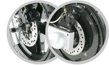 sont équipés avec un freinage à disques flottants, à l'avant et à l'arrière.